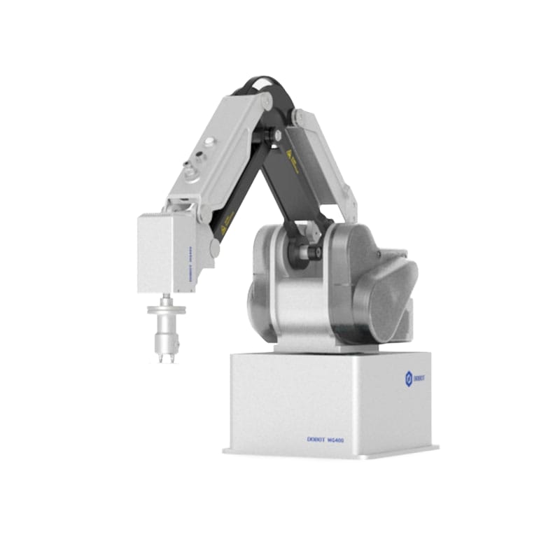 The MG400 is an ultra-compact desktop robotic arm with a footprint smaller than an A4 sheet of paper. It is safe for human collaboration, easy to use, and quick to deploy. With a 750 g payload, 440 mm reach, drag-to-teach, and collision detection, it offers a cost-effective solution for small-batch, flexible automation.