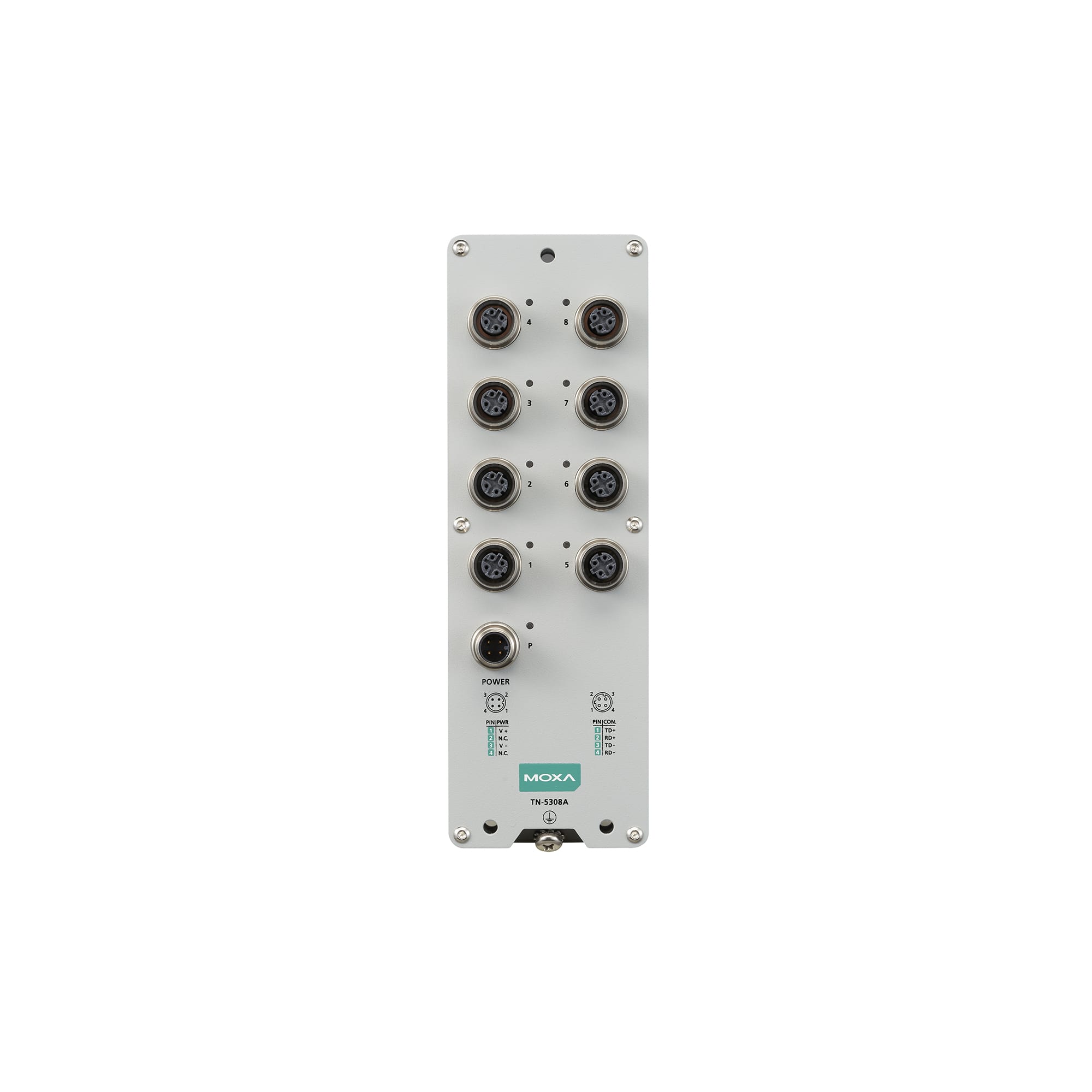 The ToughNet TN-5300A Series M12 unmanaged Ethernet switches are designed for industrial applications in harsh environments. The TN-5300A Series switches use M12 connectors to ensure tight, robust connections, and guarantee reliable resistance against environmental disturbances, such as vibration and shock. The TN-5300A Series Ethernet switches provide 5 or 8 Fast Ethernet M12 ports, support IEEE 802.3/802.3u/802.3x with 10/100M, full/half-duplex, MDI/MDI-X auto-sensing, and provide an economical solution for your industrial Ethernet network.