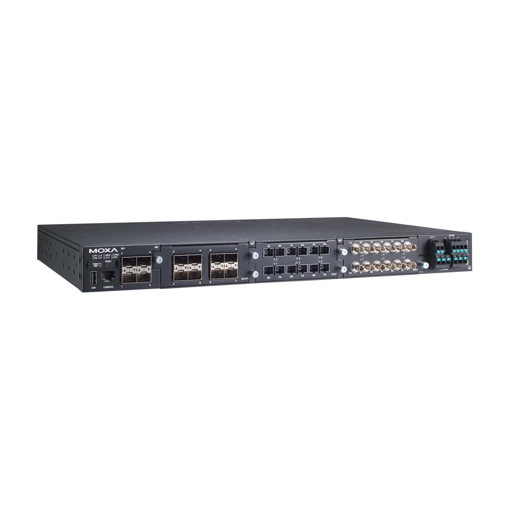 4 1GbE, 24 modular 1GbE-port (802.3bt PoE optional) Layer 2 modular managed Ethernet switches