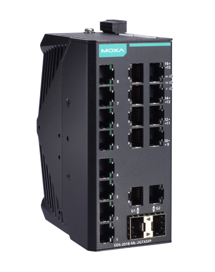 The EDS-2018-ML series of industrial Ethernet switches have sixteen 10/100M copper ports and two 10/100/1000BaseT(X) or 100/1000BaseSFP combo ports, which are ideal for applications that require high-bandwidth data convergence. Moreover, to provide greater versatility for use with applications from different industries, the EDS-2018-ML Series also allows users to enable or disable the Quality of Service (QoS) function, broadcast storm protection, and port break alarm function with DIP switches on the outer panel.